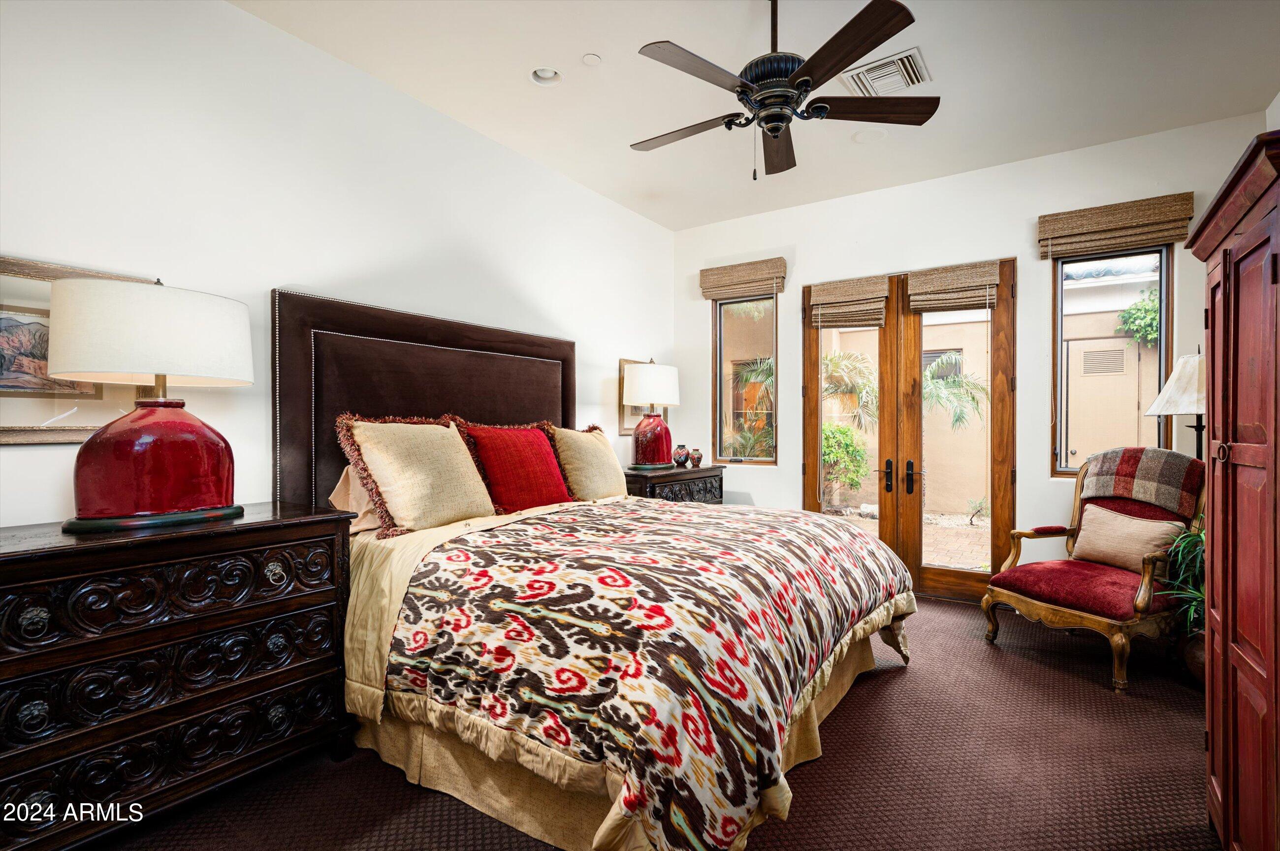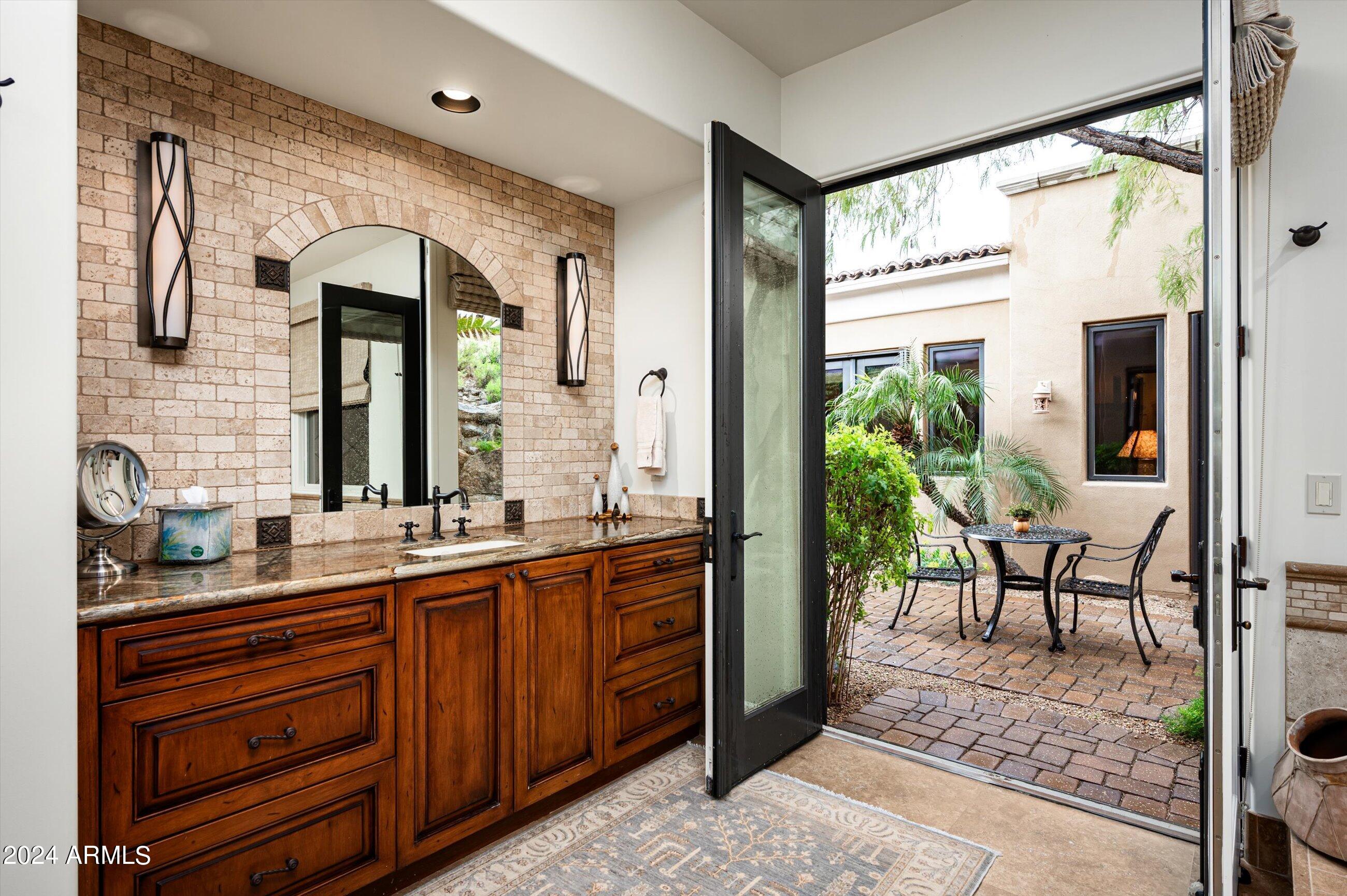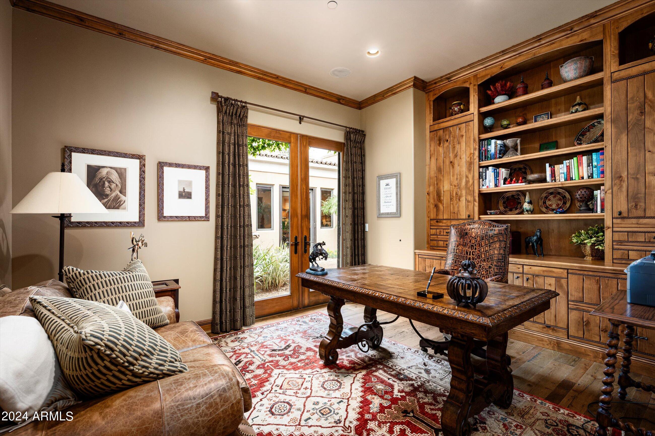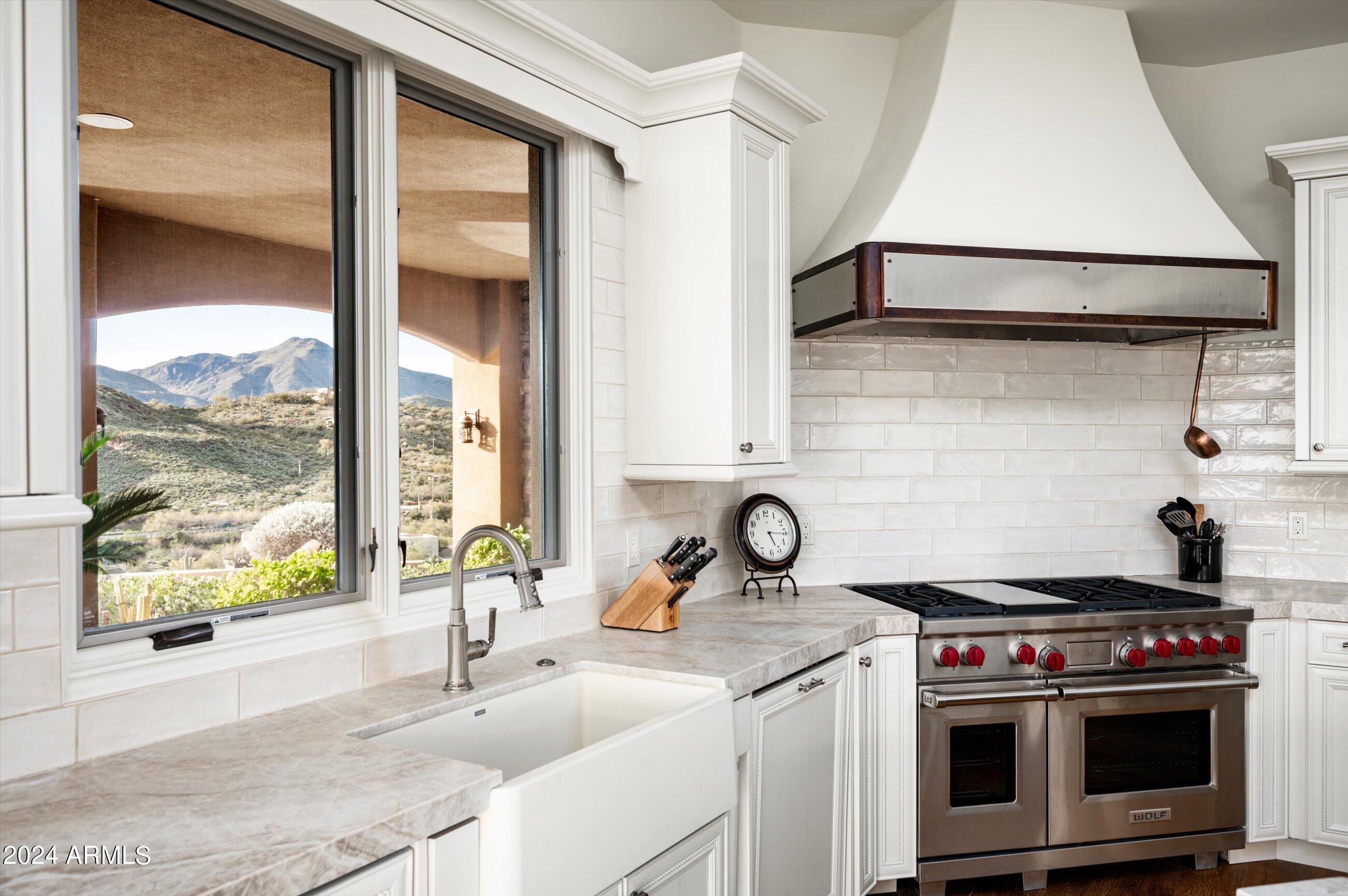 Scenic elevated ~10 acre Santa Barbara estate with breathtaking views of the Valley of the Sun, fabulous Sunsets and City Light Views can be yours forever. This home features 2 separate Guest Houses, 4 car garage, Great Room, Media Room, 2 offices, wet bar, wine room, and 5 En-suite Bedrooms all on 1 level + Exercise Room on Lower level. Lushly landscaped patios and grand-view pool deck are graced by 3 sparkling water features and Juliet balcony. Main home 3 En-suite Bedrooms open to interior courtyard w/water feature. Every possibility for seamless, indoor/outdoor living has been thoughtfully designed into this High Sonoran Retreat. Golf Membership available to transfer from Seller and furnishings excluding art are available under separate Bill of Sale.
