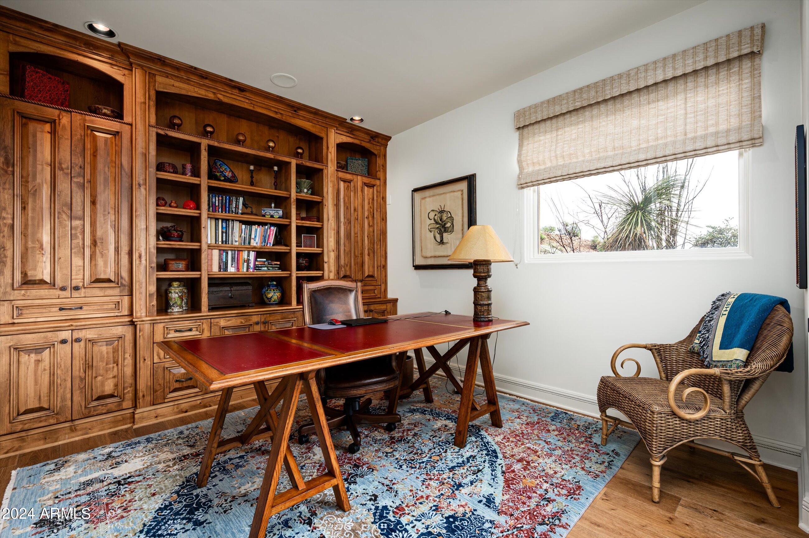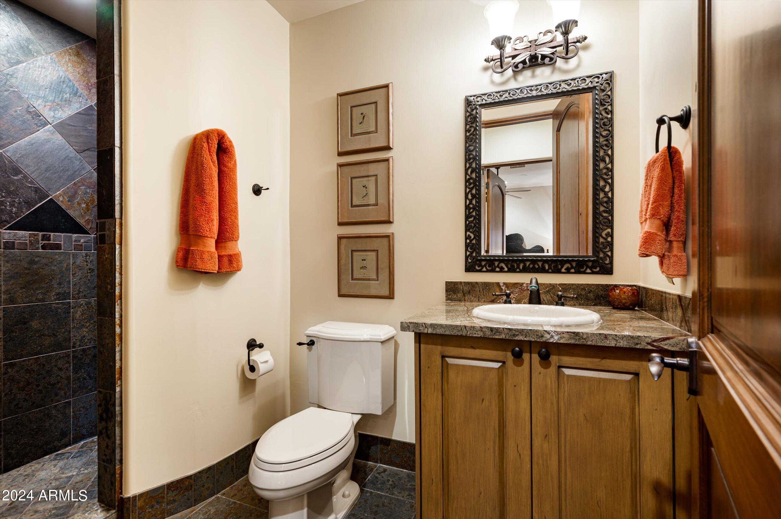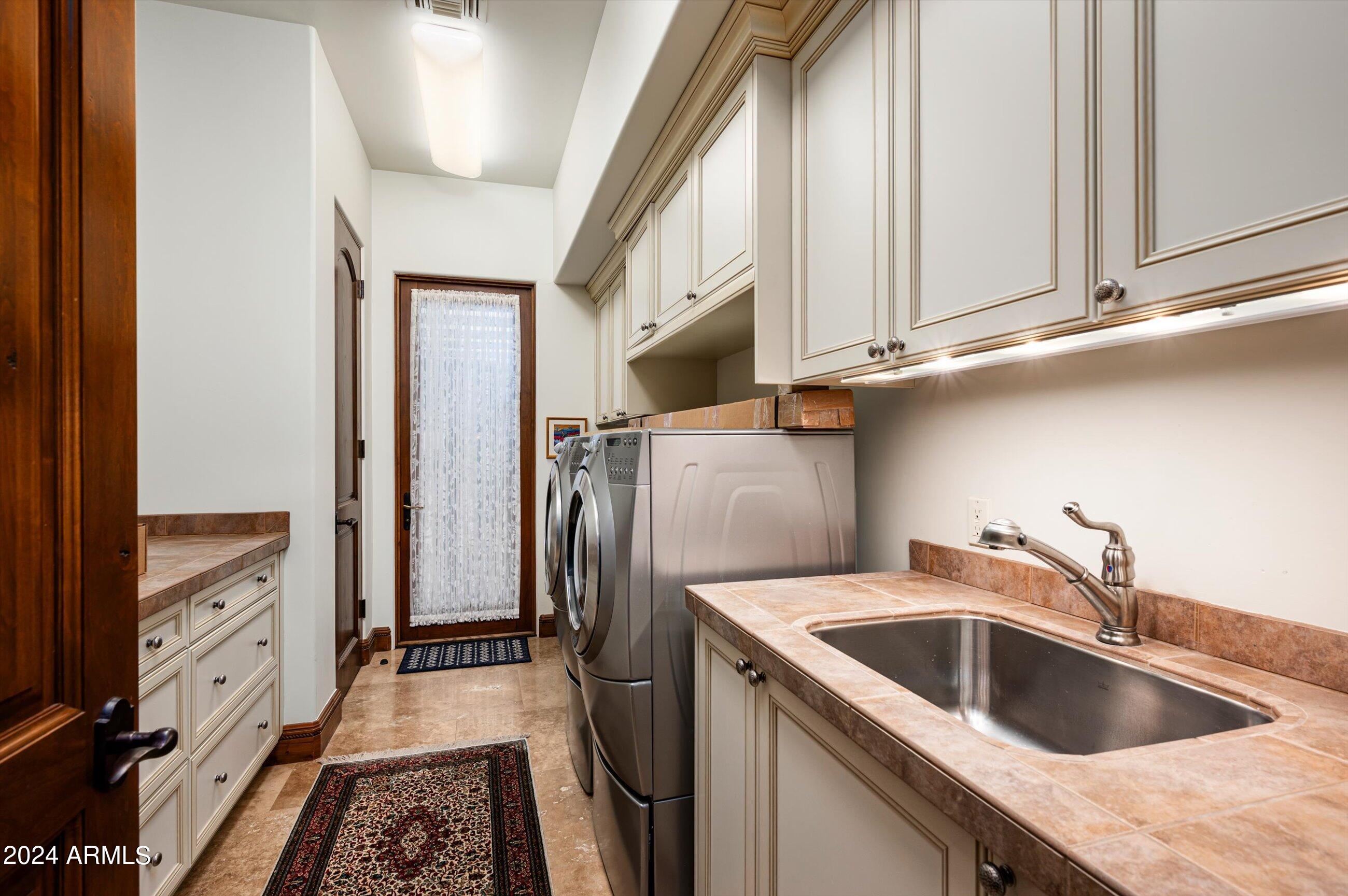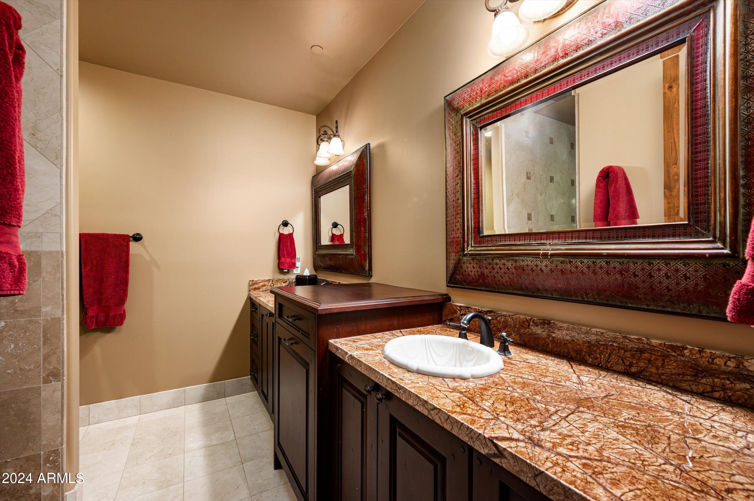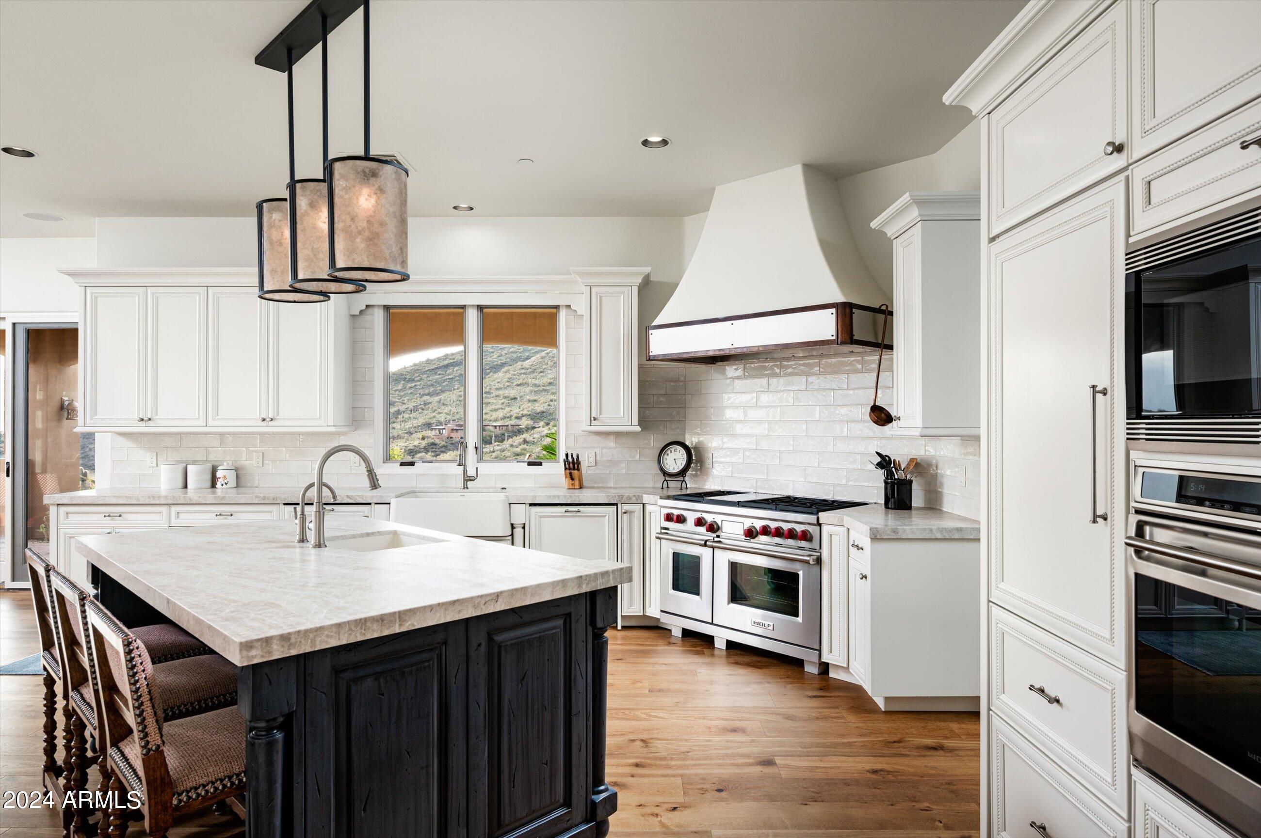Scenic elevated ~10 acre Santa Barbara estate with breathtaking views of the Valley of the Sun, fabulous Sunsets and City Light Views can be yours forever. This home features 2 separate Guest Houses, 4 car garage, Great Room, Media Room, 2 offices, wet bar, wine room, and 5 En-suite Bedrooms all on 1 level + Exercise Room on Lower level. Lushly landscaped patios and grand-view pool deck are graced by 3 sparkling water features and Juliet balcony. Main home 3 En-suite Bedrooms open to interior courtyard w/water feature. Every possibility for seamless, indoor/outdoor living has been thoughtfully designed into this High Sonoran Retreat. Golf Membership available to transfer from Seller and furnishings excluding art are available under separate Bill of Sale.